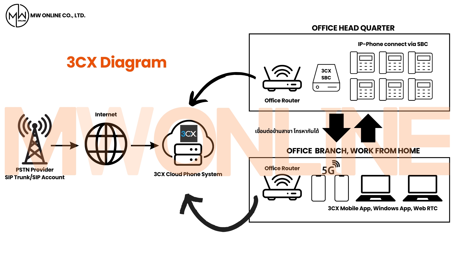 MW Online Co., Ltd. เป็นตัวแทนผู้จำหน่ายซอฟท์แวร์ระบบโทรศัพท์ 3CX Phone System และ Grandstream มีประสบการณ์การติดตั้งระบบโทรศัพท์ในอาคารสำนักงาน ออฟฟิศ พร้อมทีมงานดูแลหลังการขายด้วยทีมงานมืออาชีพ เราช่วยให้ธุรกิจและองค์กรของคุณสื่อสาร ติดต่อกับลูกค้าได้อย่างราบรื่น ทันสมัย และประหยัดค่าใช้จ่าย